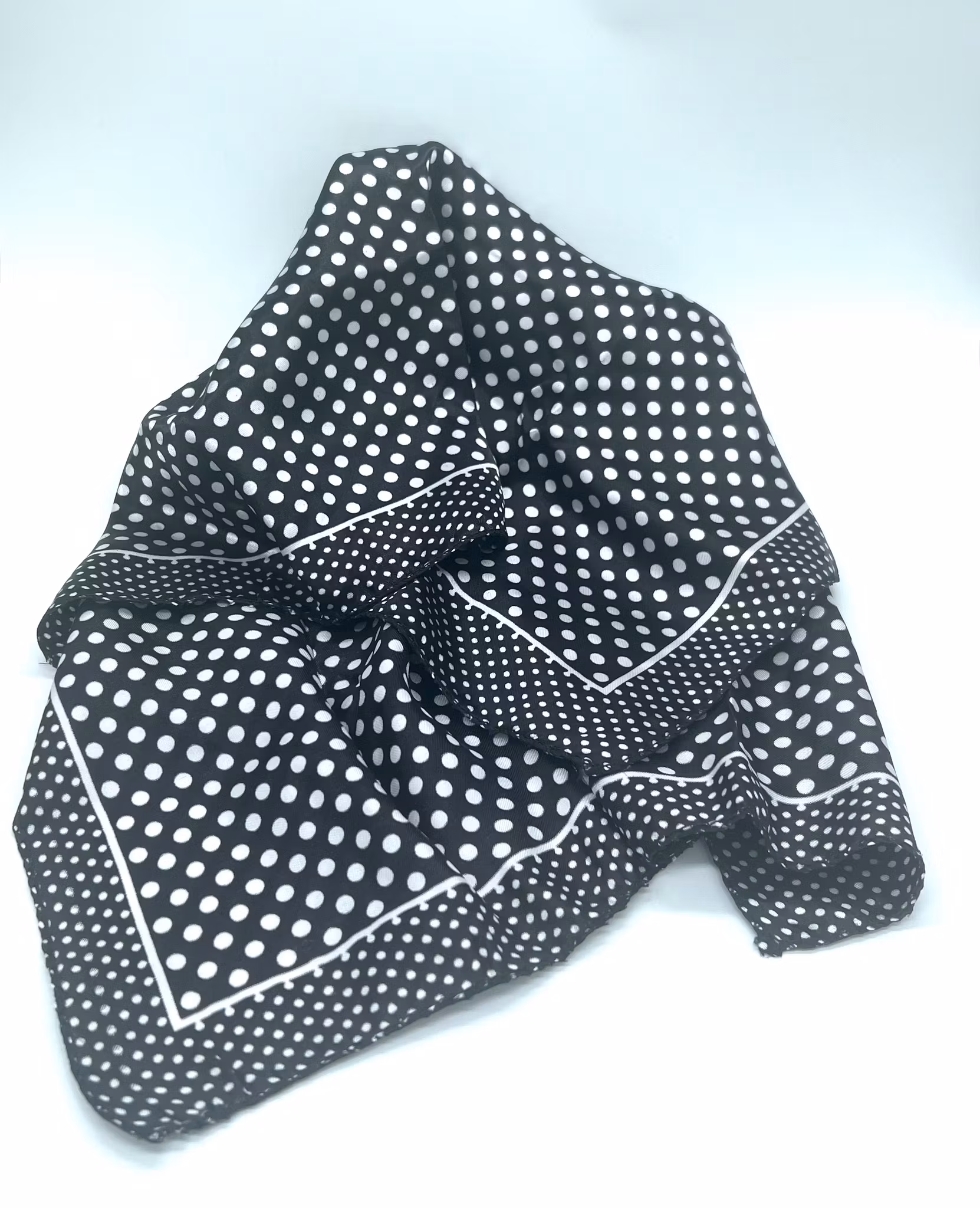 Scarf med vitra prickar i olika storlekar på svart bakgrund.