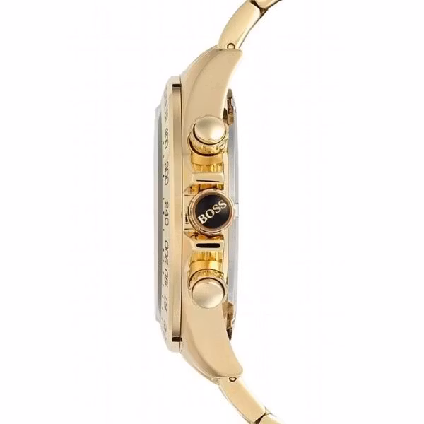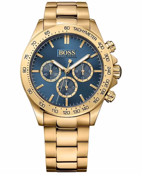 Guldfärgad klocka med blå urtavla i rostfritt stål från Hugo Boss. Levereras i presentförpackning från Hugo Boss.
